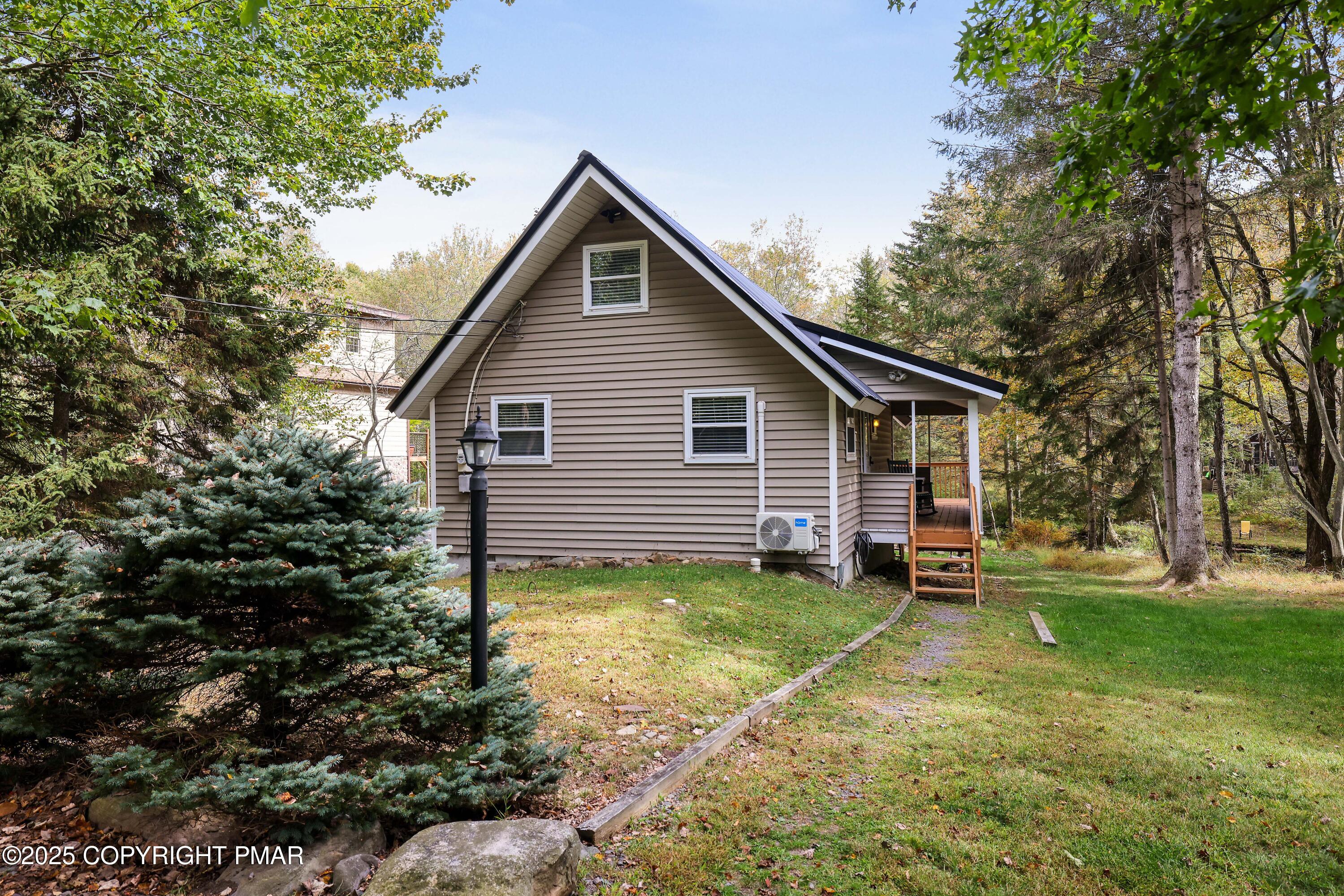ESCAPE TO YOUR VERY ON RETREAT! Charming & Newly Renovated Chalet Features 2BED/1BATH w/ Loft. Nestled in a tranquil setting this home combines modern comfort with rustic touches providing cozy comfort throughout. Key Features include, Open floor concept , Stylish LVP flooring throughout, Kitchen Island W GRANITE countertops ,Large loft area makes the perfect space for a recreation room or 3rd bedroom. Step outside to your backyard and enjoy your own private slice of nature with a flowing stream and firepit, perfect for unwinding and entertaining. Community features include swimming, boating, tennis and clubhouse. Home is being sold Turn- Key, just pack your bags and move right in. Whether you are looking for a year round, vacation or investment this property surly will check all the boxes. Close to all major POCONO attractions, restaurants, shopping I -80 & PA turnpike. SCHECDULE YOUR SHOWING TODAY!